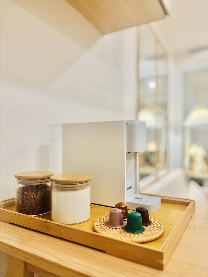 • Estación de cápsulas de café: disfruta de café recién hecho con cápsulas de cortesía, perfecto para comenzar tu día en un espacio tranquilo y acogedor.