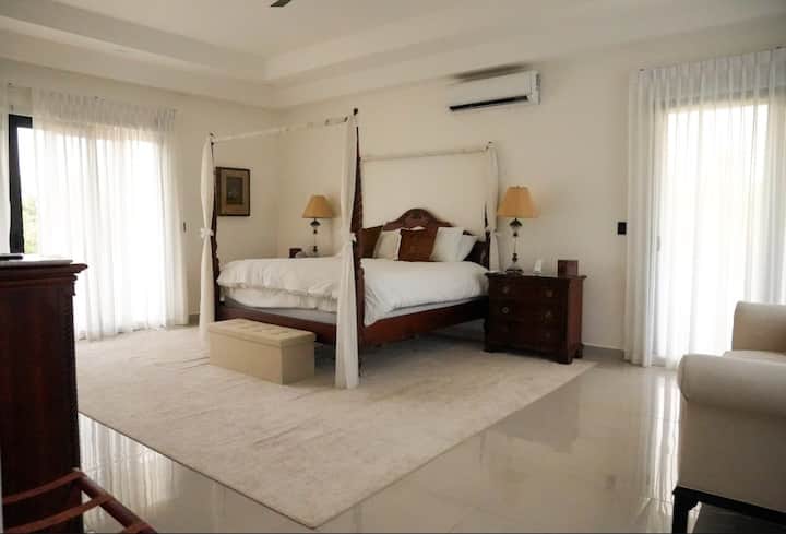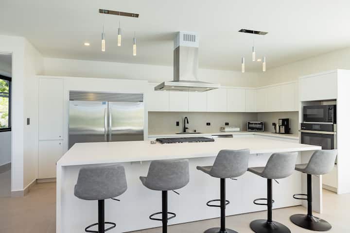 La casa cuenta con aire acondicionado completo, con cada habitación equipada con control de clima individual para la máxima comodidad. La cocina totalmente equipada es la delicia de un chef, con electrodomésticos modernos, amplio espacio en el mostrador y todo lo esencial que necesitas para preparar deliciosas comidas y refrigerios durante tu estancia.
