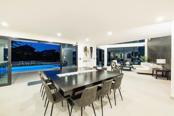 Cena juntos en la elegante mesa de comedor, barbacoa, excelentes espacios abiertos para entretener o tomar tus comidas al aire libre en la encantadora terraza con vistas a los árboles y observar monos. En el exterior, descubrirás tu propio oasis privado, donde podrás tomar el sol en la espaciosa terraza, relajarte en una piscina semiolímpica o reunirte alrededor de los sofás de la terraza para disfrutar de noches acogedoras con tus seres queridos.