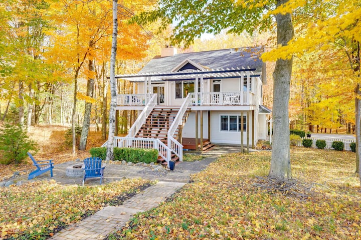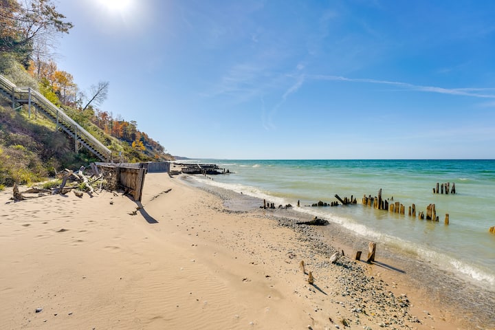 ¡Cabaña con playa privada y chimenea en Manistee!