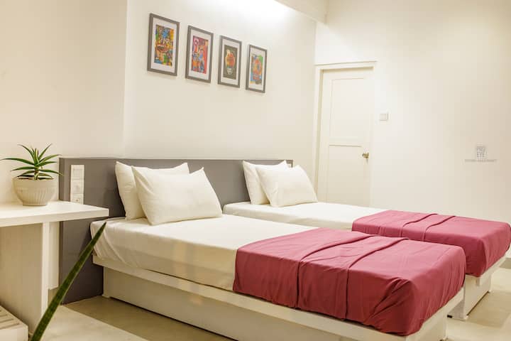 Habitación con 2 camas individuales, aire acondicionado y baño privado a 200 metros de la playa/fibra
