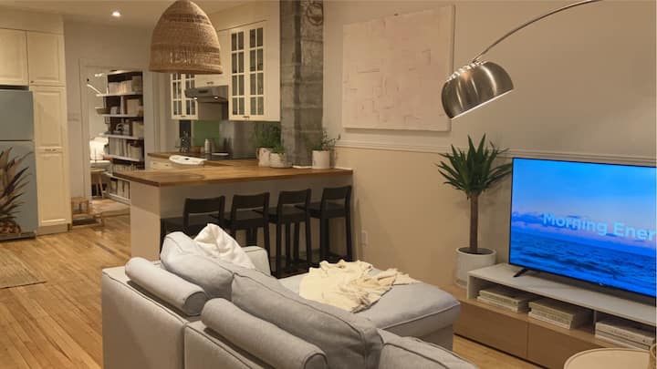 El apartamento ha sido pensado para cocinar y recibir amigos; Disfrutar del verano en Montreal con los festivales y la vida cultural o relajarse en nuestro patio en medio del jardín en flor.