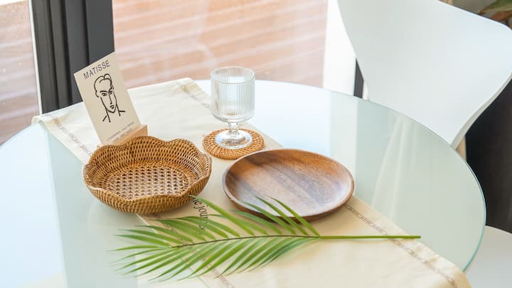 Barbacoa individual, terraza, TV, utensilios de cocina, artículos de baño, refrigerador, aire acondicionado, arrocera, estufa, secadora, cafetera, toalla, inducción, detector de monóxido de carbono, detector de incendios, no fumar, unisex
