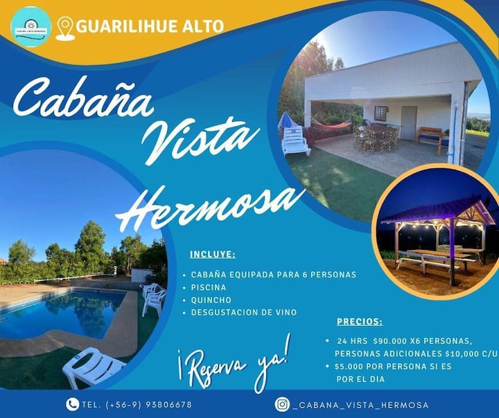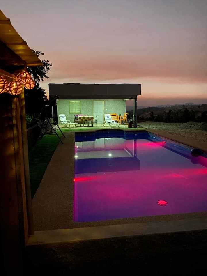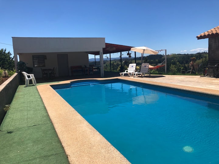 Cabaña y piscina vista hermosa