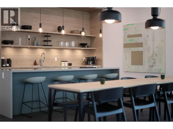 La cocina está totalmente equipada con electrodomésticos Euro de tamaño completo, encimeras de cuarzo, hermosos muebles empotrados personalizados que proporcionan mucho espacio de almacenamiento, manteniendo el espacio abierto y libre de desorden. Disfruta de la cocina grande y completamente surtida para preparar tus comidas favoritas.