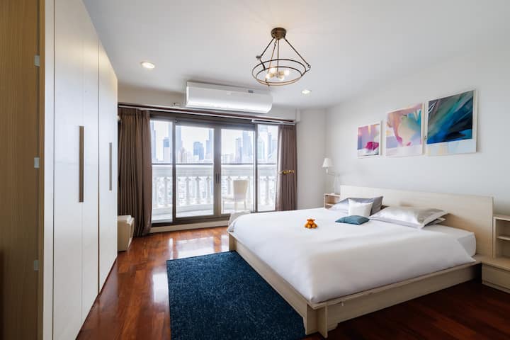 Elegante habitación de 1 dormitorio con impresionantes vistas al río en Bangkok