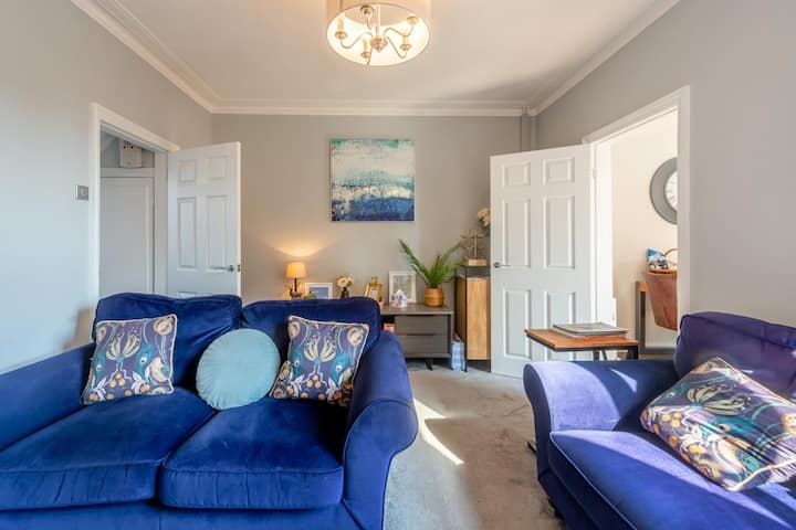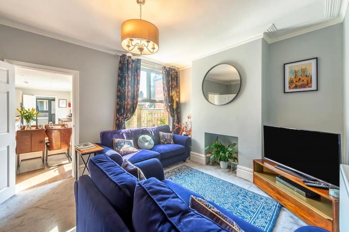 Esta espaciosa y elegante casa de vacaciones tiene capacidad para ocho huéspedes y dos perros en el corazón de Lincoln. Entra y te encontrarás en un elegante pasillo con azulejos victorianos. Justo al lado del pasillo, encontrarás una práctica y acogedora habitación con un sofá cama doble (debe solicitarse antes de la reserva), el lugar ideal para aquellos que anhelan un poco de tranquilidad para relajarse con un buen libro o una película. Continúa por el pasillo y encontrarás un salón donde tú y tus seres queridos podrán disfrutar de tiempo de calidad juntos. Desde allí, accede a la cocina-comedor, donde encontrarás todo lo que necesitas para preparar una cena para toda la pandilla, así como una gran mesa de comedor. Sube las escaleras y descubrirás tres dormitorios bien equipados: uno tamaño king, uno doble y uno individual, todas las habitaciones están servidas por el baño de arriba con bañera/ducha y un baño con ducha en la planta baja.