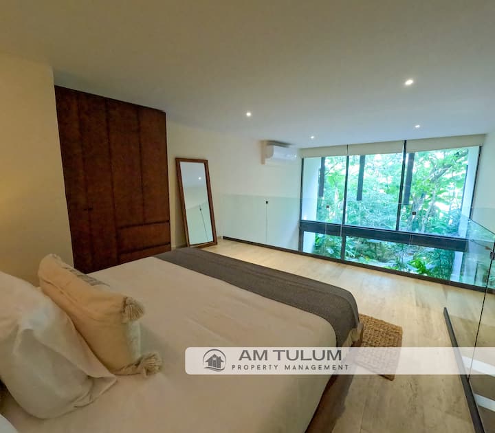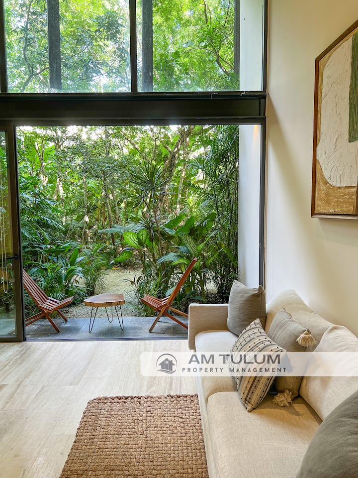 🔨 Tulum se está expandiendo rápidamente y algunos edificios cercanos pueden estar todavía en construcción. Si bien esto no es algo que podamos controlar, el diseño arquitectónico del condominio prioriza la privacidad y las vistas naturales, por lo que disfrutarás de un ambiente de selva exuberante que ayuda a bloquear la vista, y hasta cierto punto, el ruido, de la construcción cercana.