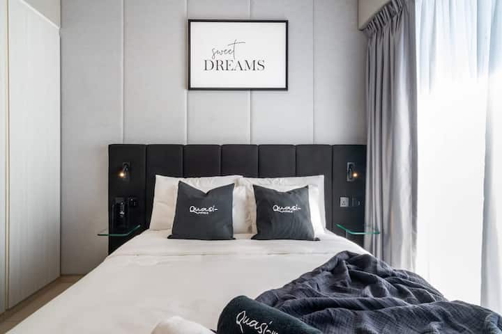 Alójate en un apartamento de 1 dormitorio y 1 baño en Zada Towers en Business Bay, Dubái, con tranquilas vistas al canal. El apartamento tiene cocina completa, wifi gratis, escritorio, lavadora y secadora, TV de alta definición, balcón y aparcamiento gratuito. La estación de metro está a solo 12 minutos a pie, por lo que moverse por la ciudad es fácil. También tendrás acceso a un gimnasio y a una piscina exterior compartida con tumbonas, ideal para hacer ejercicio o relajarte.