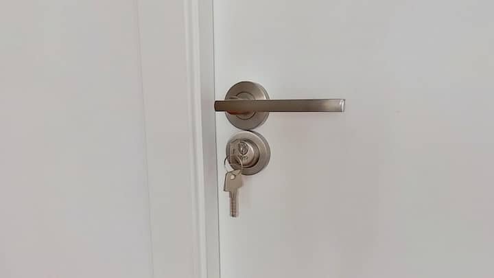 Cerradura con llave en la puerta de la habitación