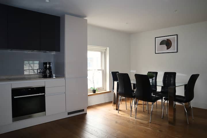Alójate en el corazón de Fitzrovia con este elegante apartamento de 2 dormitorios y 75 m² en el tercer piso de un edificio seguro (sin ascensor). Disfruta de un fácil check-in autónomo a partir de las 3:00 p. m. con recogida de llaves en una tienda cercana. Además, mantente conectado con un wifi súper rápido de 1 Gbps por trabajo o streaming.