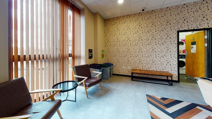 Exchange by iQ ofrece modernas habitaciones con baño en una ubicación céntrica de Nottingham, adecuadas para estudiantes y personas de corta duración. Cada habitación incluye baño privado y está diseñada para una sola ocupación. Los residentes tienen acceso a vibrantes áreas comunes, incluido un centro social con una sala de TV y una mesa de billar. La propiedad está a pocos pasos de la Universidad de Nottingham Trent y del centro de la ciudad, con fácil acceso al Centro Nacional de Hielo y al Motorpoint Arena.