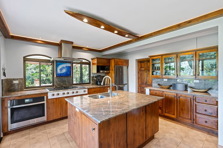 Bienvenidos a Casa Coral, la joya de nuestra propiedad. Esta amplia residencia cuenta con 2 majestuosas suites principales, una cocina comercial gourmet y dos comedores diseñados para recibir con total comodidad. Sus múltiples niveles y refinadas terrazas al aire libre revelan panoramas impresionantes: amaneceres radiantes sobre las montañas del Este, atardeceres dramáticos sobre el Pacífico y vibrantes jardines tropicales que rodean esta excepcional casa ¡todo parte de una estancia inolvidable!