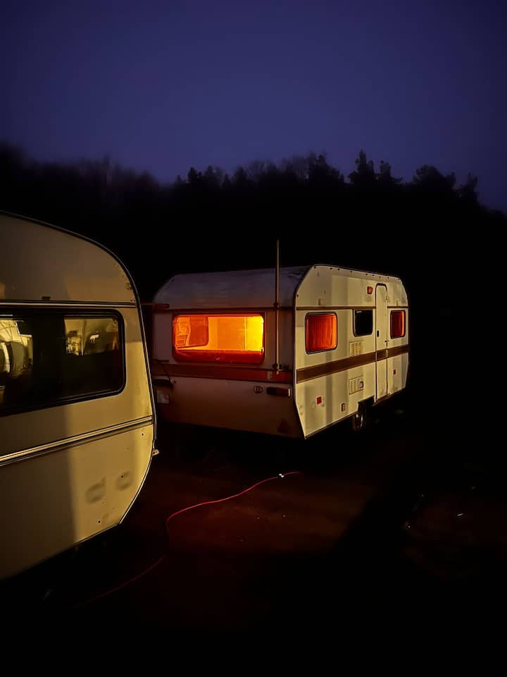 Acogedora caravana en granja