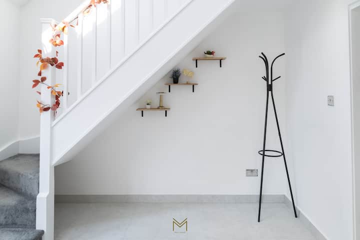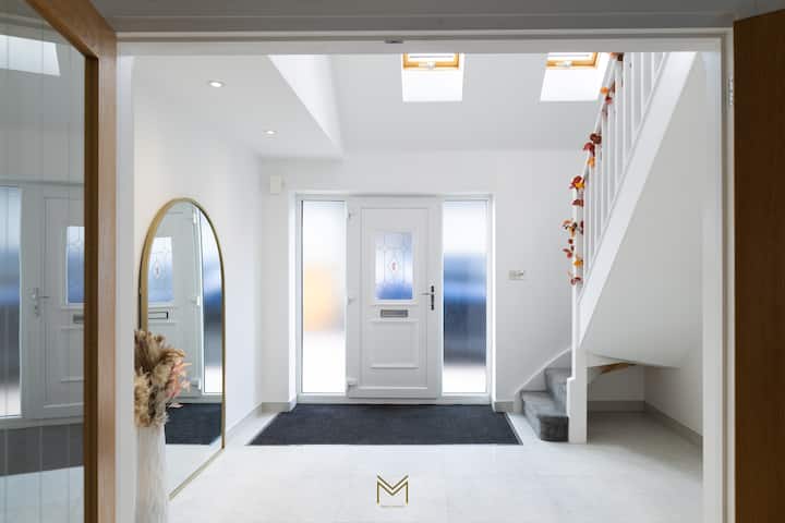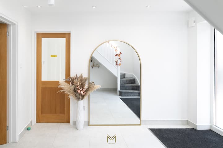 Lujoso alojamiento de 4 dormitorios en un campo de golf privado de Cotswolds. Tranquilo e ideal para pasar tiempo en familia o para cualquiera que quiera un descanso de la ciudad. Capacidad para 8 personas más 3 en sofás cama y un huésped adicional cómodo. La suite principal tiene balcón privado con 4 sillas reclinables y 2 mesas. Disfruta de una cocina y salón de planta abierta para 12 personas con 4 taburetes de bar, puertas plegables, balcones para huéspedes extendidos con tragaluz, una parrilla para barbacoa, 6 sillas al aire libre y estacionamiento para 6 autos. Se admiten mascotas con golf opcional en la cercana casa club 🏠