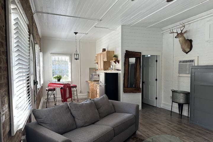 Histórico con encanto moderno te espera en este encantador apartamento ubicado en la planta baja de esta casa de campo que se encuentra en el campo del noroeste de Georgia, pero a pocos minutos del centro de Chattanooga, TN. Hay un apartamento adicional arriba, Wildwood Junction, que proporciona 2 BRs / 1 BA, cocina completa y lavandería, que se puede alquilar para grupos más grandes. Convenientemente ubicado enfrente de las instalaciones de bodas The Valley Venues, así como de Lookout Mountain Flight Park.
