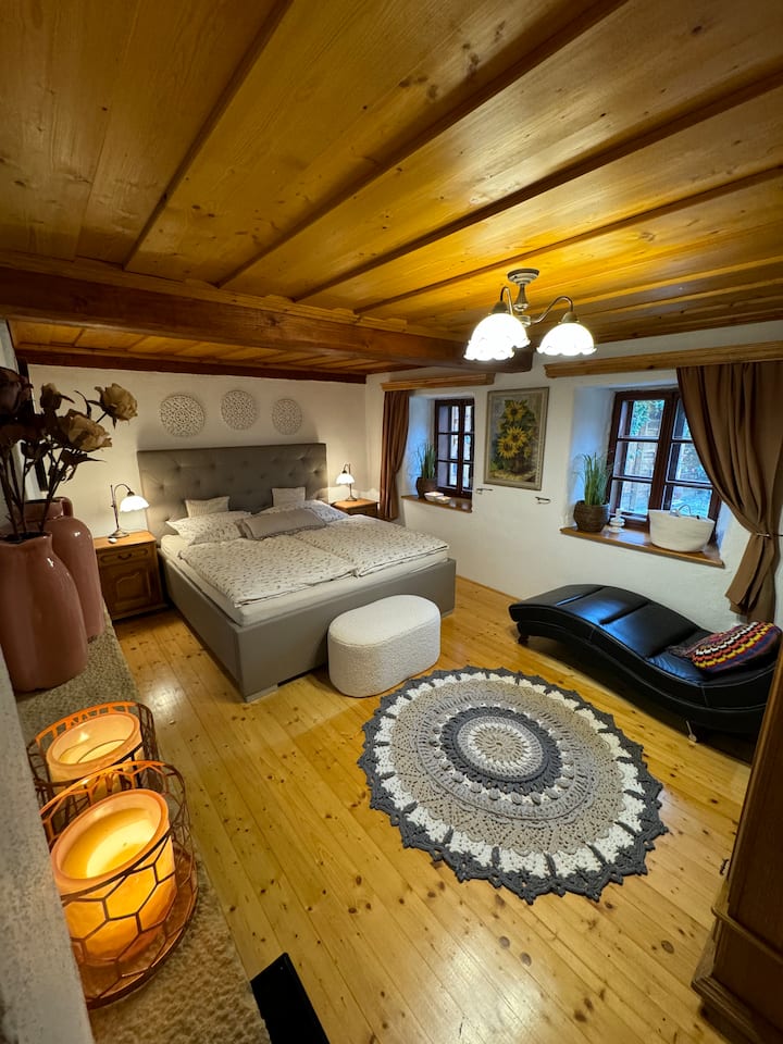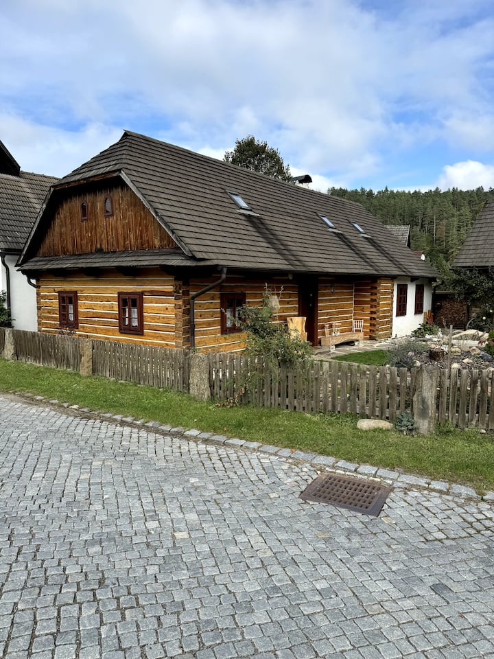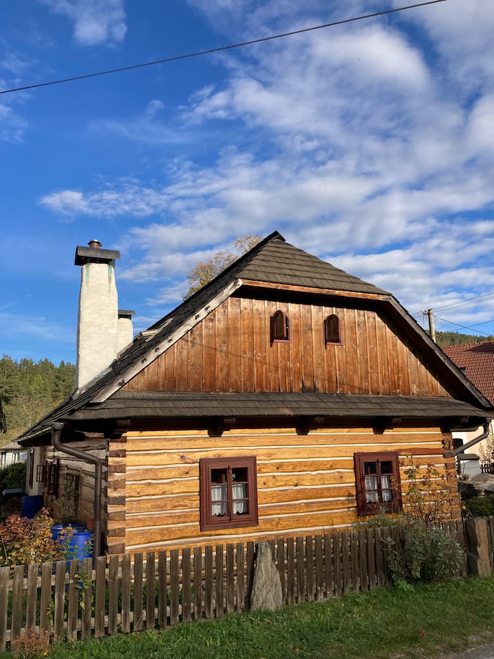 Descubre el encanto de nuestra pintoresca casa de madera, ubicada en el romántico valle del río Svratka. Este lugar mágico ofrece privacidad y tranquilidad, proporcionando el oasis perfecto de descanso y relajación.