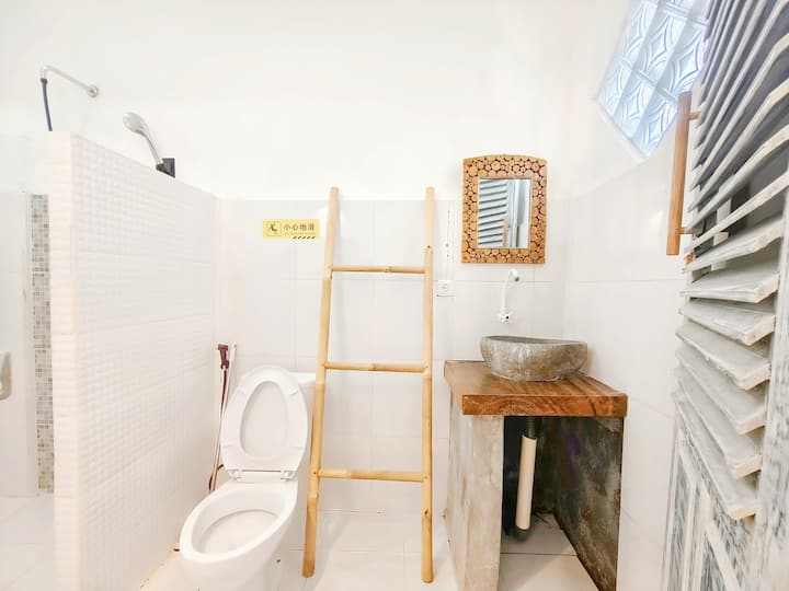 Habitación con cama de 1,8 m, piscina, cerca del muelle de Gili.T, la playa y la calle de los bares
