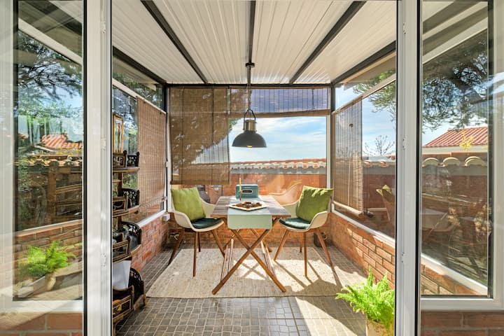 Con vista a la montaña y al jardín