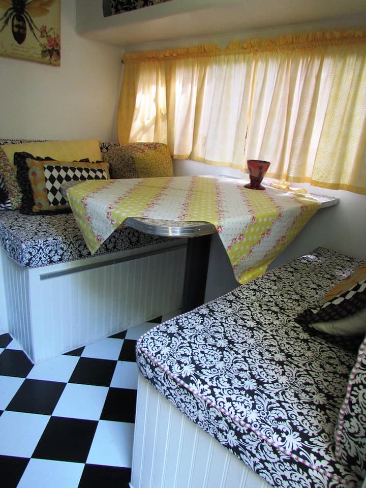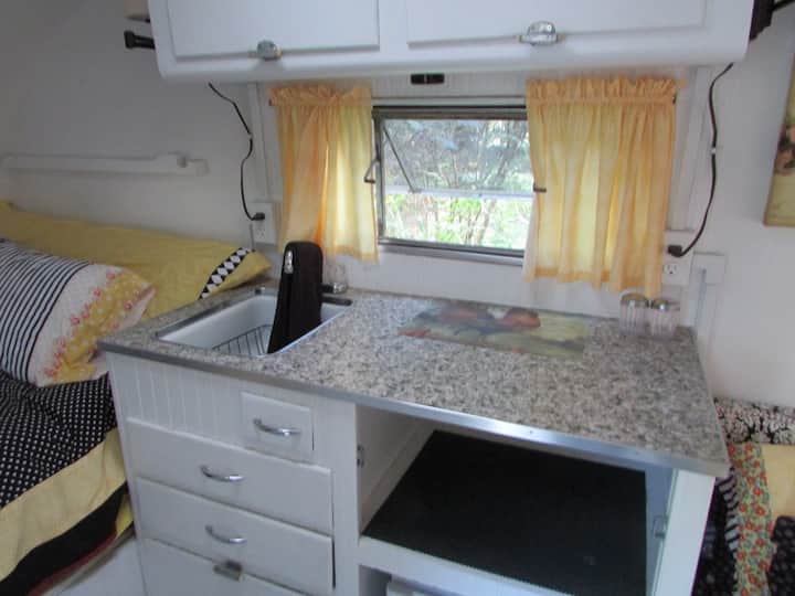 Caravana vintage Aloha amarilla restaurada de 1956