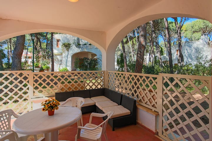 La casa de vacaciones de estilo mediterráneo es acogedora, sencilla y está bien equipada. Hay accesorios como barbacoa, lavadora, secador de pelo, TV, horno eléctrico, mosquiteras, etc.