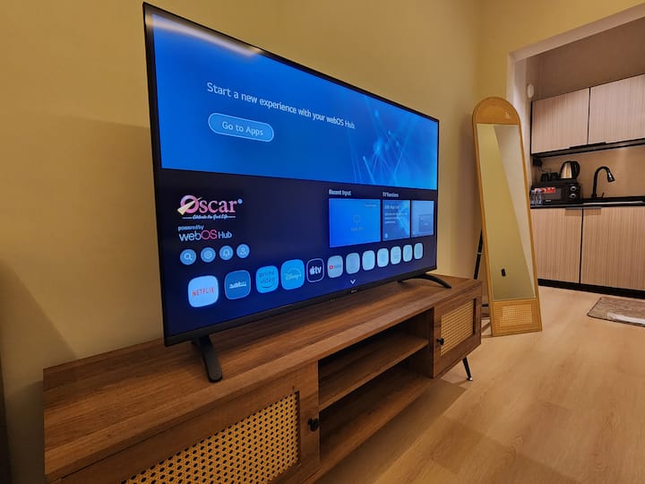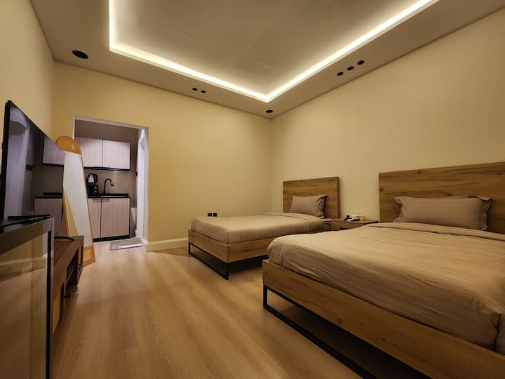 Cómodo estudio cerca de cafeterías | Dos camas individuales y estancia acogedora