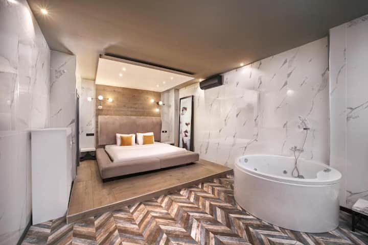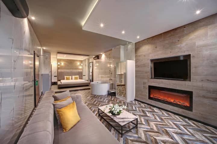 Estudio con jacuzzi y chimenea