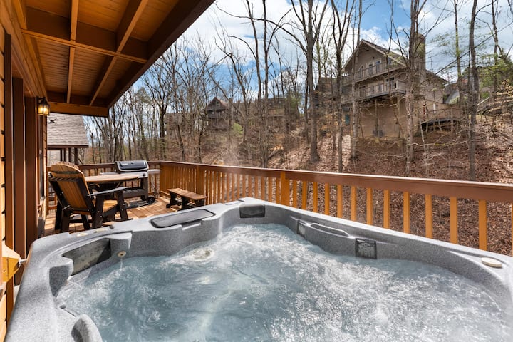Cabaña para 16 personas cerca de Pkwy | ¡Terraza y jacuzzi!