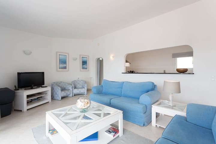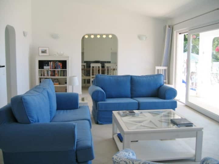 El espacioso salón está cómodamente amueblado y cuenta con grandes puertas correderas que se abren a una amplia terraza y zona de piscina. Un gran televisor de pantalla plana ofrece canales Uk y portugueses, y hay wifi disponible en todas partes.