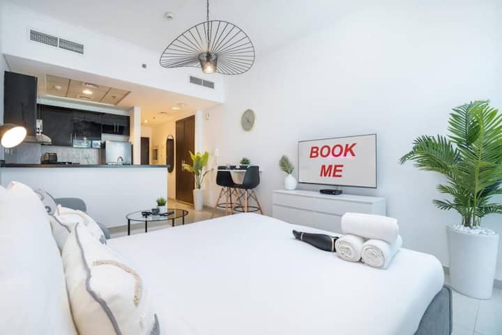 Alojamientos al amanecer: un estudio moderno cerca de JBR Beach
