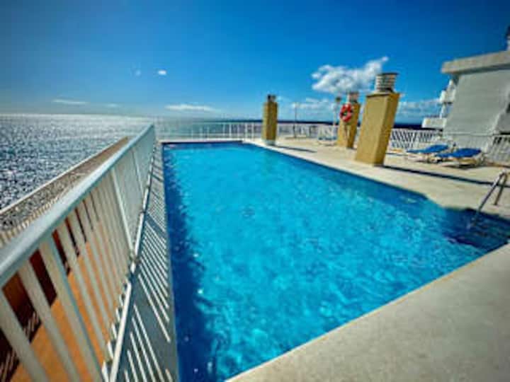 Piscina 🔑 exclusiva en la azotea con impresionantes vistas al Mediterráneo🌅🍹, perfecta para relajarse o socializar