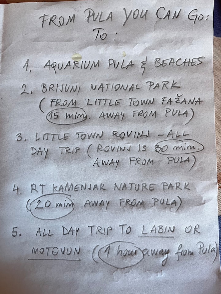 Vivimos en Pula en una casa familiar con un hermoso jardín lleno de árboles frutales como mandarina, higos, etc. Nos encanta dar frutas frescas a las personas que vienen a nuestra casa, si es posible, para que se sientan como en casa :)
