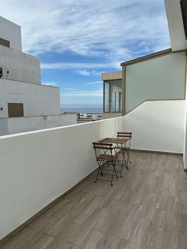 Estudio soleado con vistas al mar