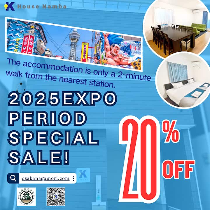 K House Namba · 3LDK, 7 min JR, aparcamiento gratuito.