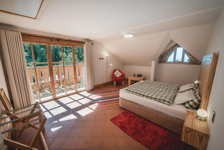 Disfruta de nuestras amplias suites, cómodamente equipadas con camas Queen & King Size, con edredones tipo norte europeos, y según tipo de habitación con espaciosos balcones privados con vistas al bosque o hacia la montaña.