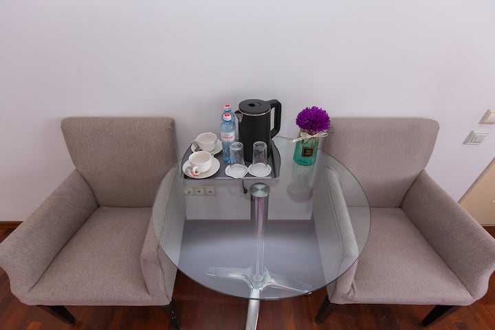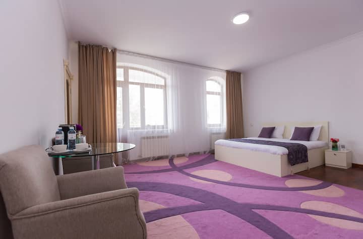 Me llamo Bakyt, tengo 38 años, nací y crecí en Almaty, estudié en Estados Unidos durante un año, trabajé en diferentes empresas, a los 30 años decidí que era hora de comenzar mi negocio y abrí un complejo de baños con amigos, que funcionó con éxito durante más de 6 años, luego lo vendí y decidí abrir un hotel, que es lo que ahora hago, casado, cuatro hijos, me gusta ver las sonrisas de mis huéspedes, así que paso mi tiempo principal en la reunión del hotel y registrando a los huéspedes.