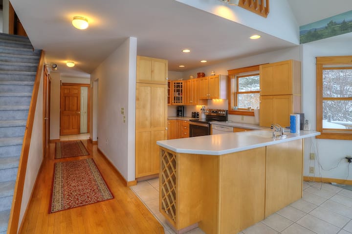 La propiedad está a 3 minutos en coche del supermercado IGA, Loon Lodge, The Farmhouse y el centro de la ciudad de Rangeley. Saddleback Ski Resort (clasificado como el número 1 en Maine tres (3) años seguidos) está a 10 minutos en coche y Sugarloaf Ski Mountain está a 40 minutos en coche de nuestra casa. Hay dos campos de golf muy buenos y pintorescos (Mingo Springs GC y Evergreen GC) ubicados a 10 minutos de Rangeley Lake Lodge; el campo par-3 para familias: Moose Meadows está a 20 minutos en coche, y el campo de golf Sugarloaf (un campo de golf diseñado por Robert Trent Jones Jr. calificado como el número 1 en Maine y adyacente a Sugarloaf Ski Mt.) está a 40 minutos en coche. Hay un montón de aparcamiento privado disponible fuera del garaje adjunto (el aparcamiento interior del garaje es solo para el almacenamiento de los propietarios). La gran cubierta envolvente tiene potencial solar durante todo el día con sus exposiciones al este, sur y oeste, y las puestas de sol son las más hermosas que experimentarás en la región de Rangeley Lakes. La cubierta tiene una mesa de picnic y sillas, y una barbacoa de gas propano. Wifi, una gran televisión inteligente (Roku y Netflix) en LR, y una cocina principal totalmente equipada hacen de esta una gran casa para relajarse, extenderse y mantenerse en contacto con el mundo exterior (¡si así lo deseas!).