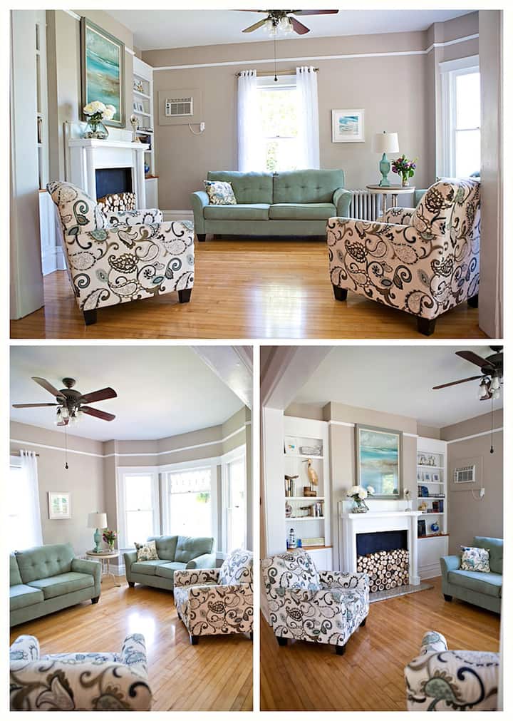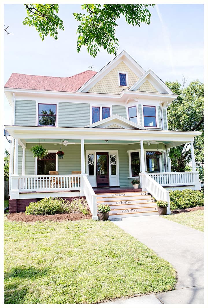 Nuestra familia ha estado de vacaciones durante varios años en Cape Charles y nos enamoramos de la ciudad. Cada vez que lo visitábamos, siempre mirábamos la zona y queríamos un lugar propio. Llegamos a esta casa y sabíamos que encajaría cómodamente con toda nuestra familia en la casa (nosotros como abuelos, nuestros 3 hijos y sus cónyuges y nuestros 6 nietos).