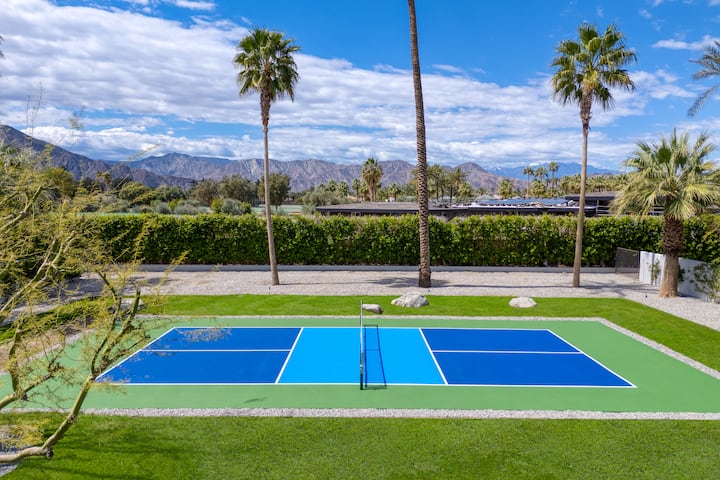 - Grandes patios traseros con piscinas, jacuzzis, pozos de fuego, un putting green y una cancha de pickleball.