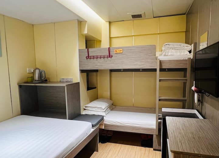 #2- Habitación para cuatro personas en Mong Kok (una litera + una cama doble, baño privado)
