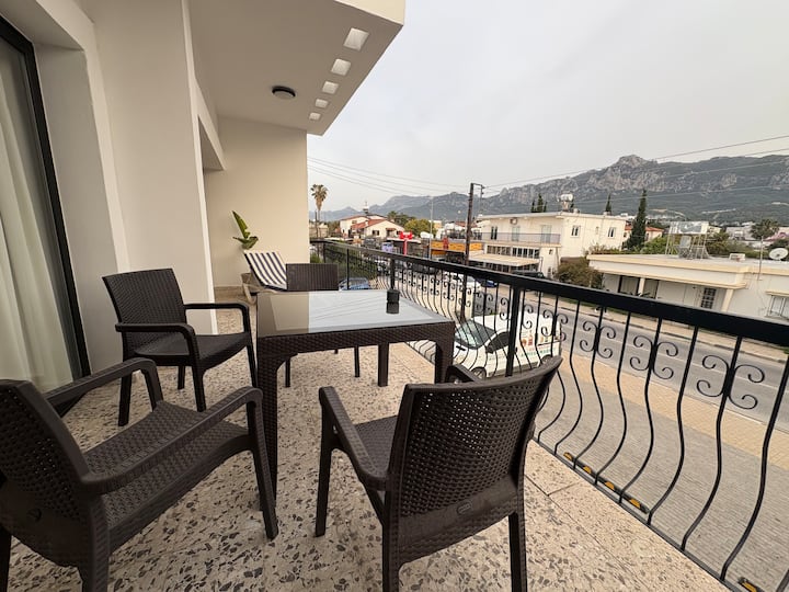 Gran 1+1 plano Enorme balcón, TV inteligente de 65 pulgadas, limpio