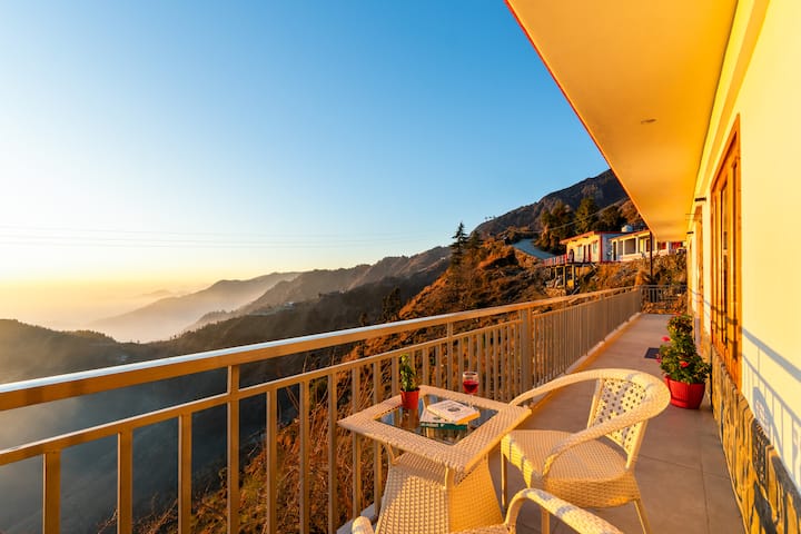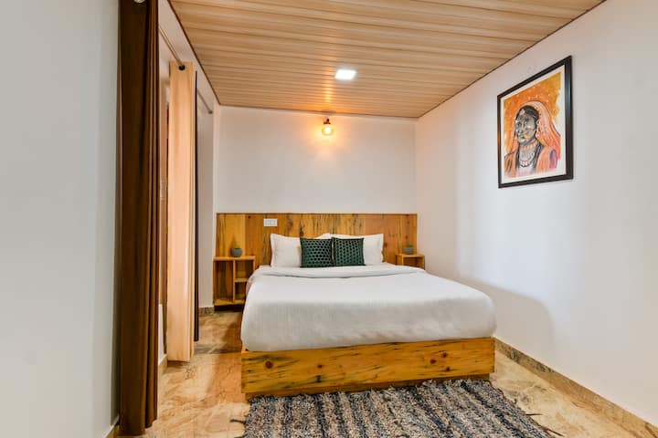 Escápate del caos de la vida de la ciudad y sumérgete en el esplendor de la naturaleza en nuestro sereno refugio 3BHK. Ubicado en un entorno tranquilo, este alojamiento ofrece una escapada relajante con impresionantes vistas panorámicas desde el amanecer hasta el atardecer. Ya sea que estés tomando café en la enorme terraza compartida de 1500 pies cuadrados o disfrutando de la fresca brisa de la montaña, cada momento aquí es inolvidable.