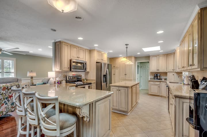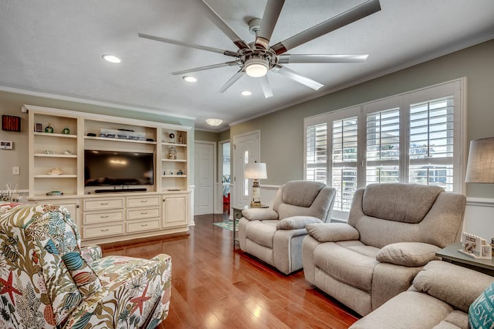 Mantente conectado y entretenido durante tus vacaciones con televisores ubicados en la sala de estar y en cada dormitorio. Disfruta de acceso a una gran cantidad de canales por cable y a tus servicios de transmisión favoritos, como Netflix, Hulu y Disney+. Para mayor comodidad, hay una lavadora y una secadora en la lavandería, por lo que es fácil empacar luz y volver a casa con recuerdos preciados en lugar de lavandería.
