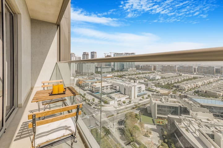 Elegante 1BR con piscina, zona de barbacoa y gimnasio en MBR City