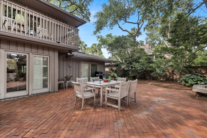 Sal a tu oasis privado en el patio trasero y disfruta de la belleza del Lowcountry de Hilton Head. Cena al aire libre bajo la sombra natural de los robles, enciende la parrilla y disfruta de los relajantes sonidos de la naturaleza después de un día en la playa cercana.
