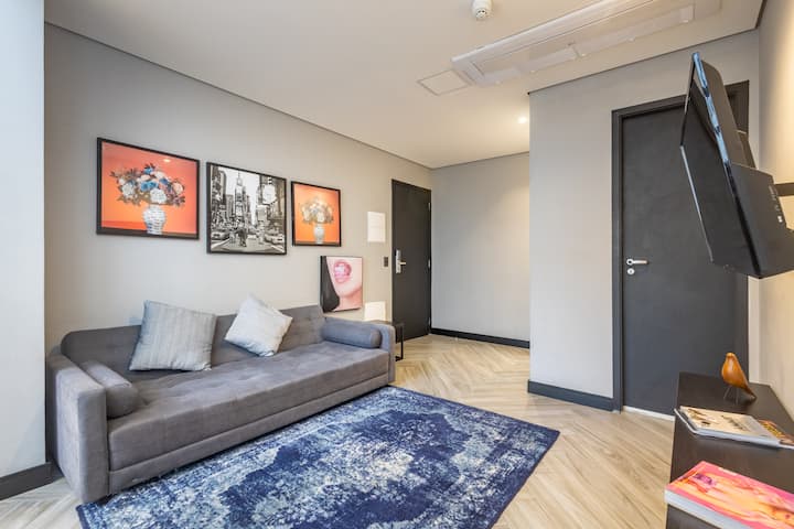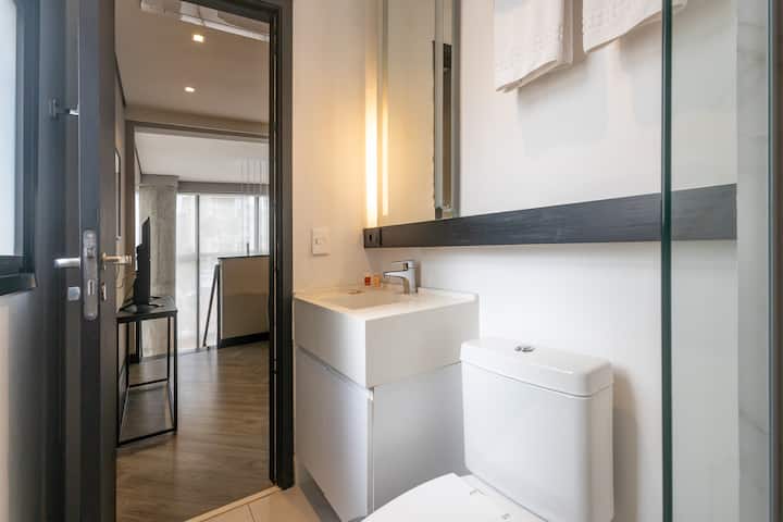 Disfruta de un apartamento amueblado en Housi Bela Cintra, el espacio está equipado con nevera, placa de cocina, con una cama tamaño queen y un sofá, así como dos baños completos y privados. Los huéspedes podrán acceder al gimnasio, lavandería, mercado abierto las 24 horas, espacio para mascotas, coworking y estacionamiento de pago con jet y galvanoplastia con las cantidades debidas. También contamos con una caja para alquileres de aparatos electrónicos, una caja de pedidos IFood y Housito que puede llevar tus pedidos a tu estudio.