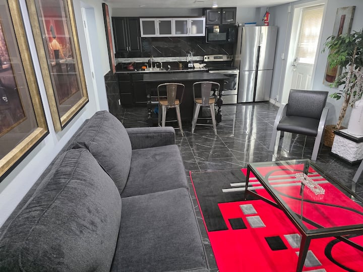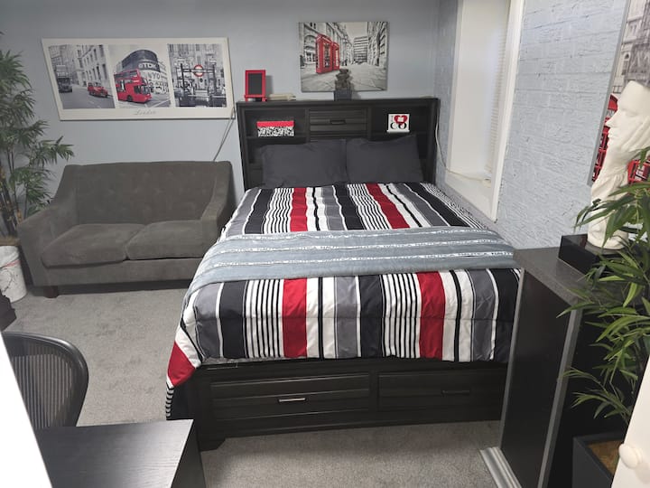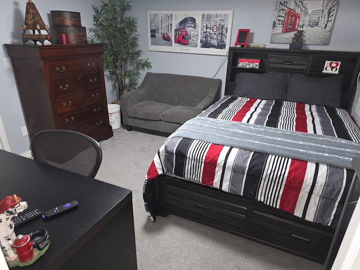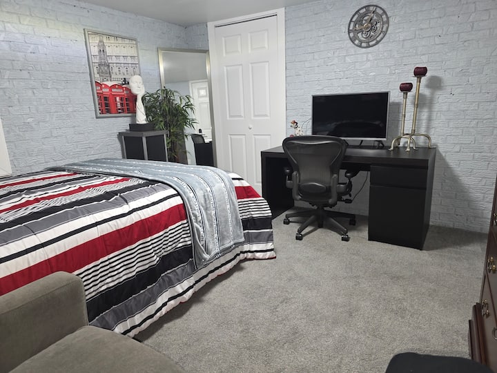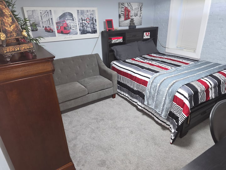 Bonita habitación en un apartamento en el sótano.
