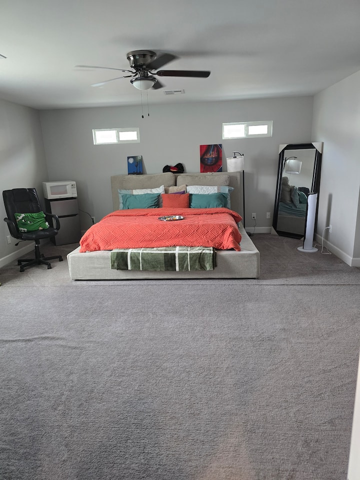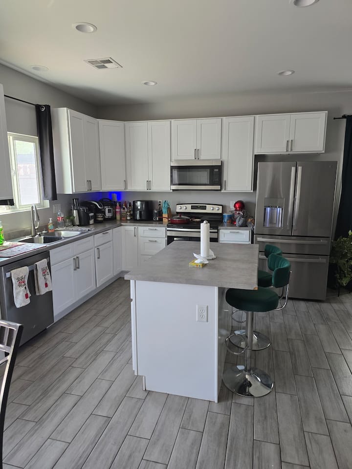 Ahora vivo en Washington DC y mi mamá será la anfitriona de nuestro alojamiento. Vive en el primer piso, es de mediana edad y muy dulce. Las habitaciones de arriba son amplias. El dormitorio principal incluye microondas y nevera pequeña y tiene un baño privado con bidé. La otra habitación tiene baño completo adyacente. También hay un espacio de trabajo para aquellos que necesitan manejar negocios de forma remota.