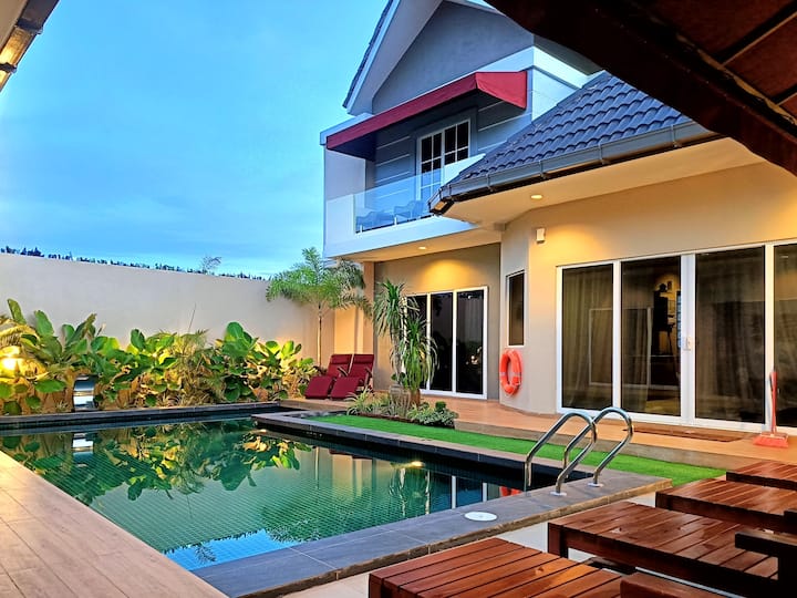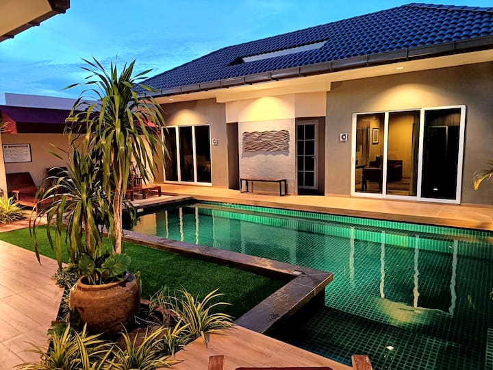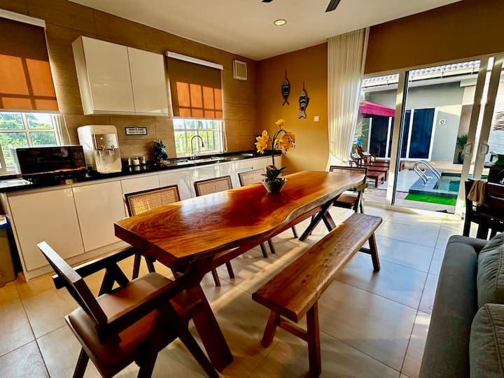 Los huéspedes tendrán acceso exclusivo a toda la villa, incluida la piscina, los patios, el césped artificial de minigolf, las zonas de estar, la cocina y todas las comodidades durante su estancia. Además, se puede acceder a una zona exterior vallada, ideal para diversas actividades, a través de la puerta de salida lateral de la villa.