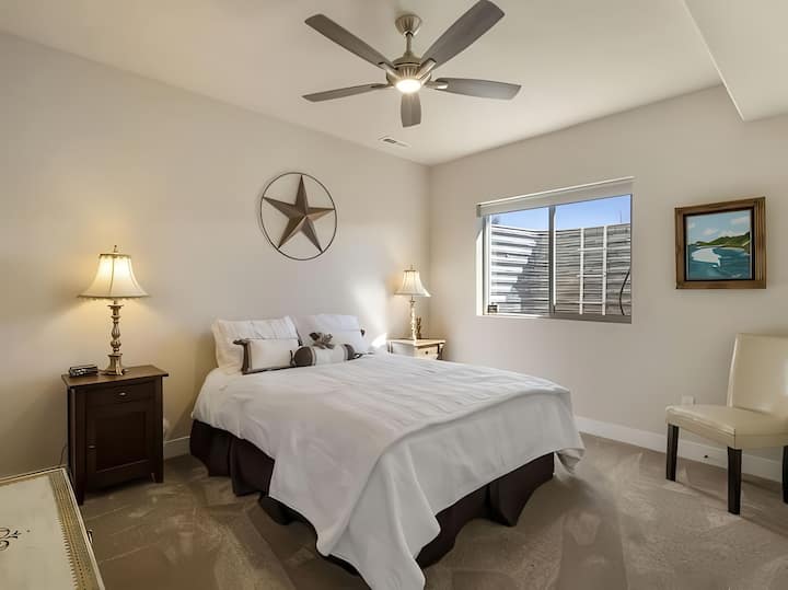 Cada uno de los cuatro espaciosos dormitorios está diseñado pensando en la comodidad, con colchones Tempur-Pedic premium y sábanas suaves. Dos dormitorios están arriba y dos en el nivel inferior.